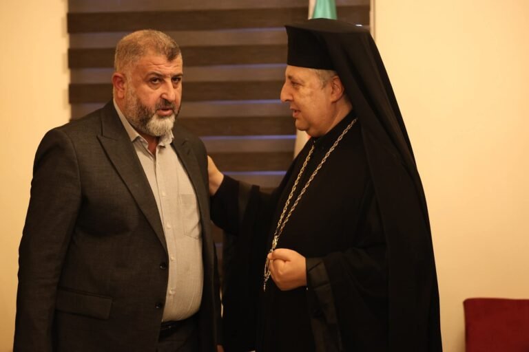كما التقى المحافظ بالمطران “إلياس الدبعي”، مطران الروم الكاثوليك في حوران وجبل العرب، حيث جرى التأكيد على عمق النسيج الاجتماعي في المنطقة وأهمية التعايش بين مختلف المكونات كعامل قوة وداعم للتنمية والإعمار.