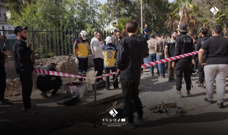 وفور اكتشاف الموقع، باشرت الجهات المختصة مهامها، حيث حضرت فرق الدفاع المدني برفقة خبراء من “الهيئة الوطنية للمفقودين”، وبمتابعة ميدانية من محافظة دمشق للكشف عن المكان وإخراج الرفات. كما سارعت مباحث الأمن الجنائي إلى الموقع ونظمت ضبطًا رسميًا بالواقعة وفق الأصول القانونية.