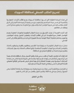 وأكد المكتب الصحفي أن التواصل مع الحكومة ليس خياراً بل ضرورة وطنية، تقوم على الشفافية والمساءلة وتحمّل المسؤولية، مشيراً إلى أن المحافظة ماضية في العمل لإيجاد الحلول العملية التي تمس حياة الناس اليومية وتضمن كرامتهم.