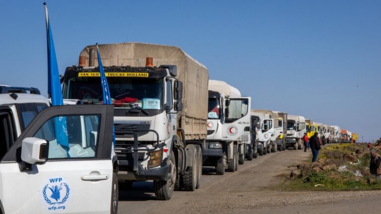 وقال مراسل “مؤسسة جولان”، إن القافلة التي دخلت السويداء، اليوم، مؤلفة من 34 شاحنة محمّلة بشحنات من الطحين والمواد الطبية، وخزانات مياه الشرب لدعم مراكز الإيواء، بالإضافة إلى معدّات كهربائية، وذلك ضمن الجهود الحكومية المستمرة لتعزيز الأمن الغذائي والصحي في السويداء.