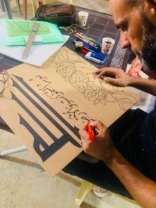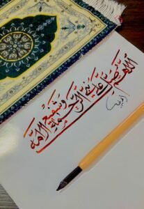 وخلال العامين الماضيين، لم يترك الحربي القلم يوماً، بحسب قوله. فقد أصبح التدريب اليومي جزءاً أساسياً من حياته. كما تعرّف عبر الإنترنت إلى عدد من الخطاطين السوريين الذين تابعوا أعماله وأبدوا إعجابهم بأسلوبه، وأخبره بعضهم أن لديه لمسات خاصة في الخط، إلا أنه يعلق على ذلك بتواضع قائلاً: “أنا أراها عادية جداً، وهذا الحكم متروك للمتابع”.