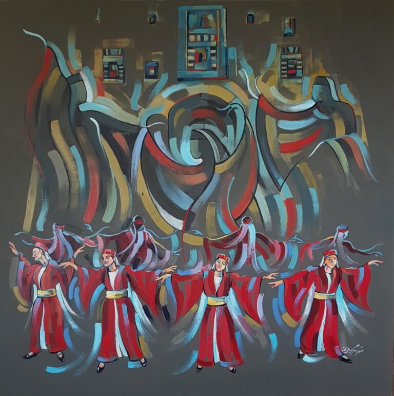 لوحة تجسد رقصة السماح للتشكيلي السوري منذر شرابي