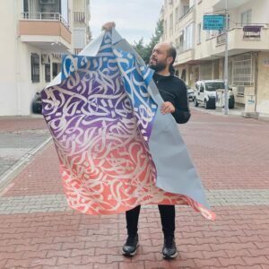 كما يوضح أن تجربته تنطلق من الإدراك والعاطفة والإحساس بوصفها ركائز للعمل الفني، حيث يسعى إلى استكشاف دواخل الحرف العربي عبر الحركة والانفعال، مستلهماً مفردات شعرية وموسيقية تنعكس في اللون والشكل العام للوحة. ويشير أيضاً إلى توجهه في مشروعه “مسودات” نحو استخدام مواد جديدة، والانتقال من اللوحة التقليدية إلى فضاء أكثر تحرراً، يعكس عفوية التعبير وعمق الإحساس.