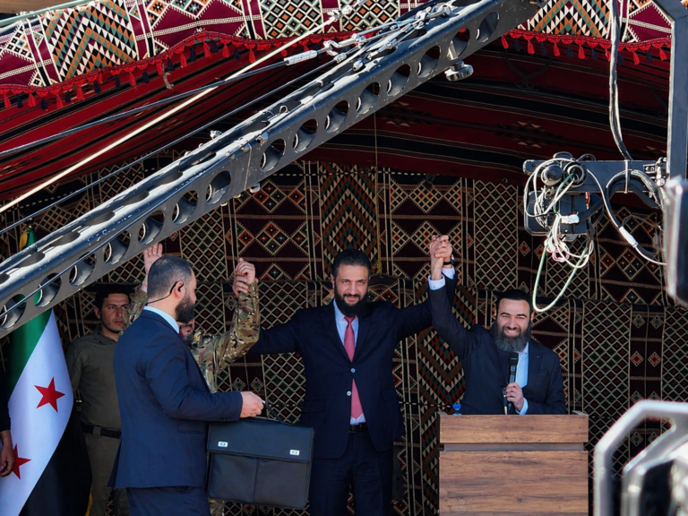وصل الرئيس أحمد الشرع، اليوم الخميس، إلى مدينة دوما في ريف دمشق، برفقة وزير الدفاع مرهف أبو قصرة والقيادي السابق في فصيل “جيش الإسلام” عصام البويضاني، وسط استقبال شعبي ورسمي من أهالي المدينة ووجهائها.